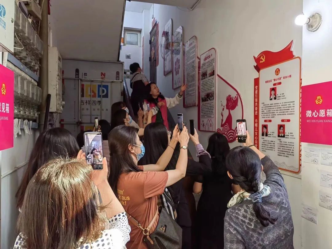 走进洪山区珞南街道博苑社区,参观交流楼栋妇女小组、妇女微家建设工作经验。