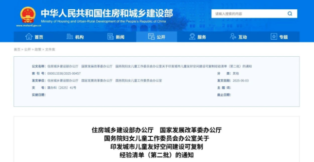 近日,住房城乡建设部办公厅、国家发展改革委办公厅、国务院妇女儿童工作委员会办公室印发《城市儿童友好空间建设可复制经验清单(第二批)》。其中,湖北武汉经验上榜。
