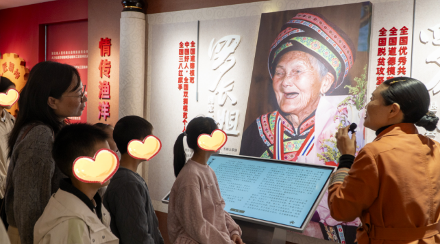 馆内,泛黄的老照片、承载岁月的旧工具,以及“五峰好人”展板上的先进事迹,深深吸引了孩子们的目光。从坚持17年免费义务带货的全国劳动模范邓兰舟,到奋战在脱贫一线的全国优秀共产党员罗官章,再到四十年如一日守护“天下娘心”的全国道德模范罗长姐……每一个故事都是一盏明灯。爱心妈妈们耐心讲解,通过互动提问引导孩子们思考。榜样的力量在孩子们心中激荡起涟漪。10岁的向袁涛在聆听本地劳模扎根山区的事迹后,坚定地说道:“我将来也要像他们一样,为家乡作贡献!”一颗关于责任与担当的种子,已悄然种下。