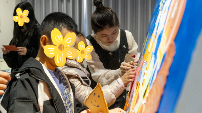 孩子们贴上写有“想当科学家”“希望家人健康”的心愿贴纸,爱心妈妈们则贴上“愿你勇敢追梦”“妈妈为你加油”的鼓励贴纸,两株“成长树”并排而立,根须相握、枝叶相依,记录下陪伴与守护的温暖约定。