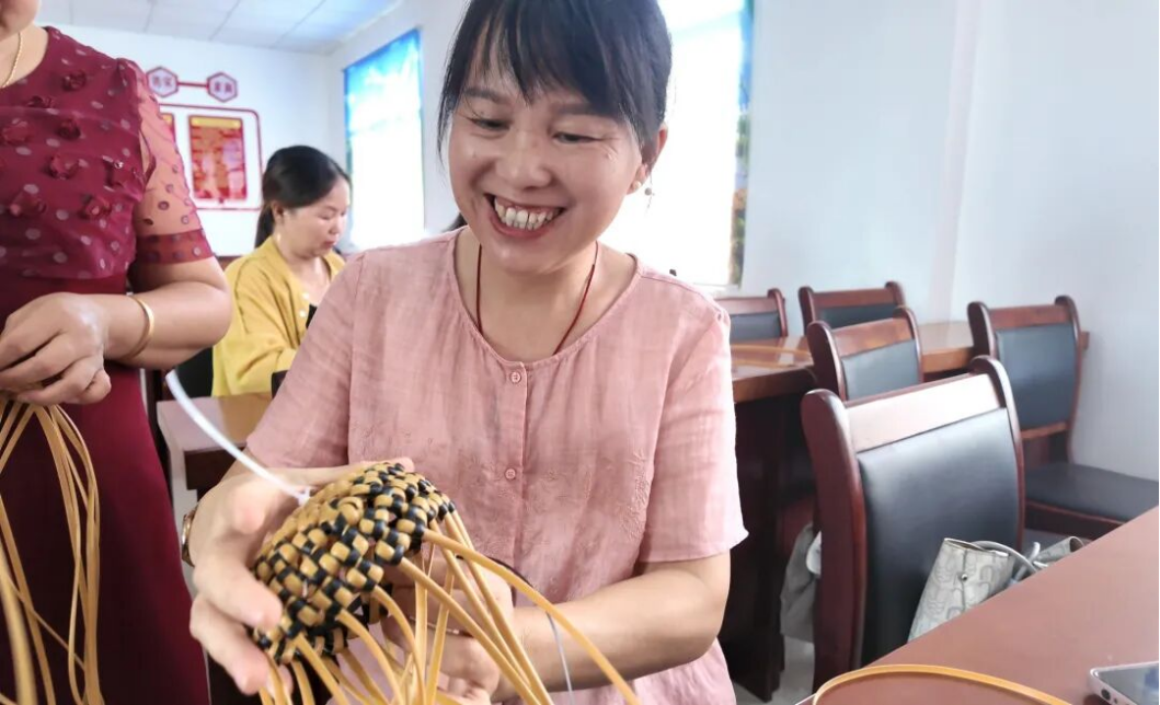 融合创新,赋能文化。项目跳出单纯技能培训的框架,致力于推动“技能提升、产业发展、文化传承”三位一体深度融合?!靶⒉磬缟獭毕钅砍晌乒恪靶⒉兜馈庇搿靶⒉适隆钡男麓翱?,助力太子米、手工油面、手工豆丝等地理标志产品及乡土好物拓宽销路,间接带动上下游产业就业300余人?!扒墒种巍毕钅吭蛲ü氡就撩袼?、非遗元素的结合,开发出系列蕴含地域文化符号的果篮、手提包等产品,部分已进入景区、商超销售体系,让传统文化在创新设计中焕发新生,也提升了妇女创作者的文化自信与市场竞争力。