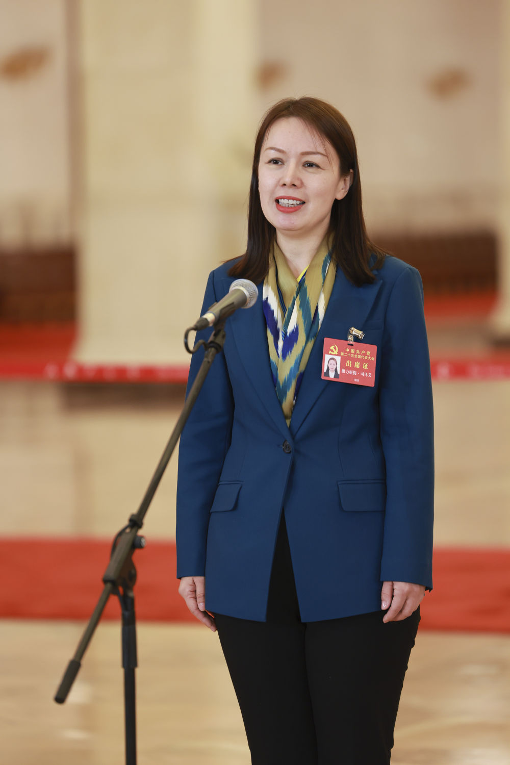这是开幕会前,祖力亚提·司马义代表接受采访。新华社记者 邢广利 摄