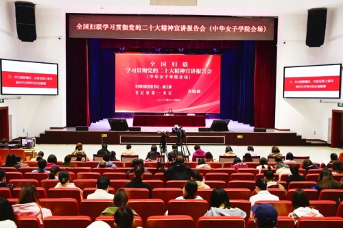 11月4日,全国妇联学习贯彻党的二十大精神宣讲报告会在中华女子学院举行。全国妇联党组书记、副主席、书记处第一书记黄晓薇作宣讲报告,并与师生们交流互动。